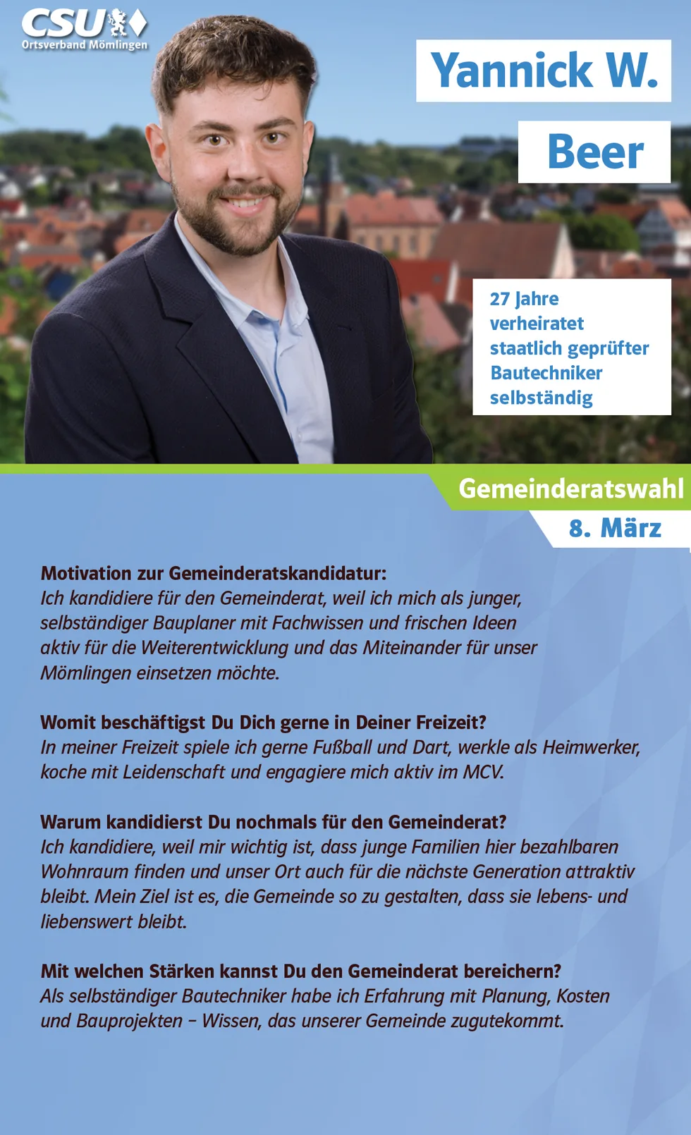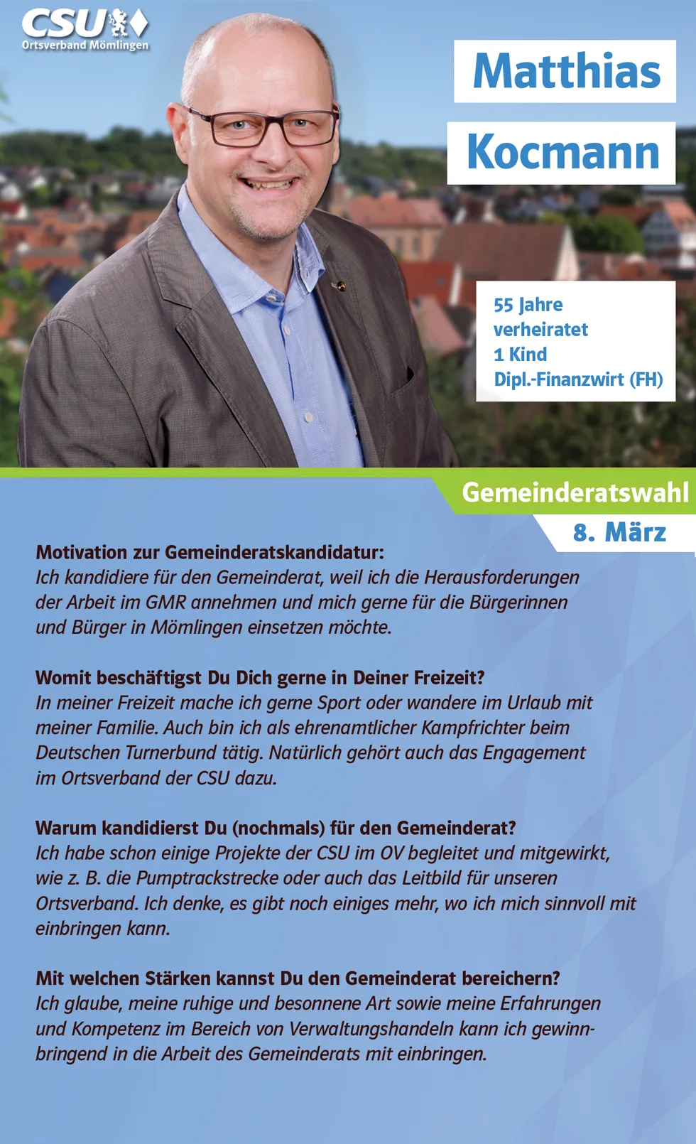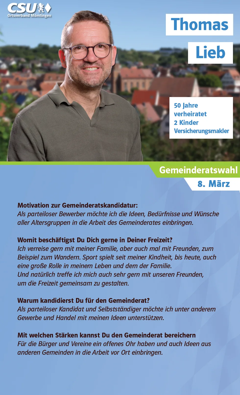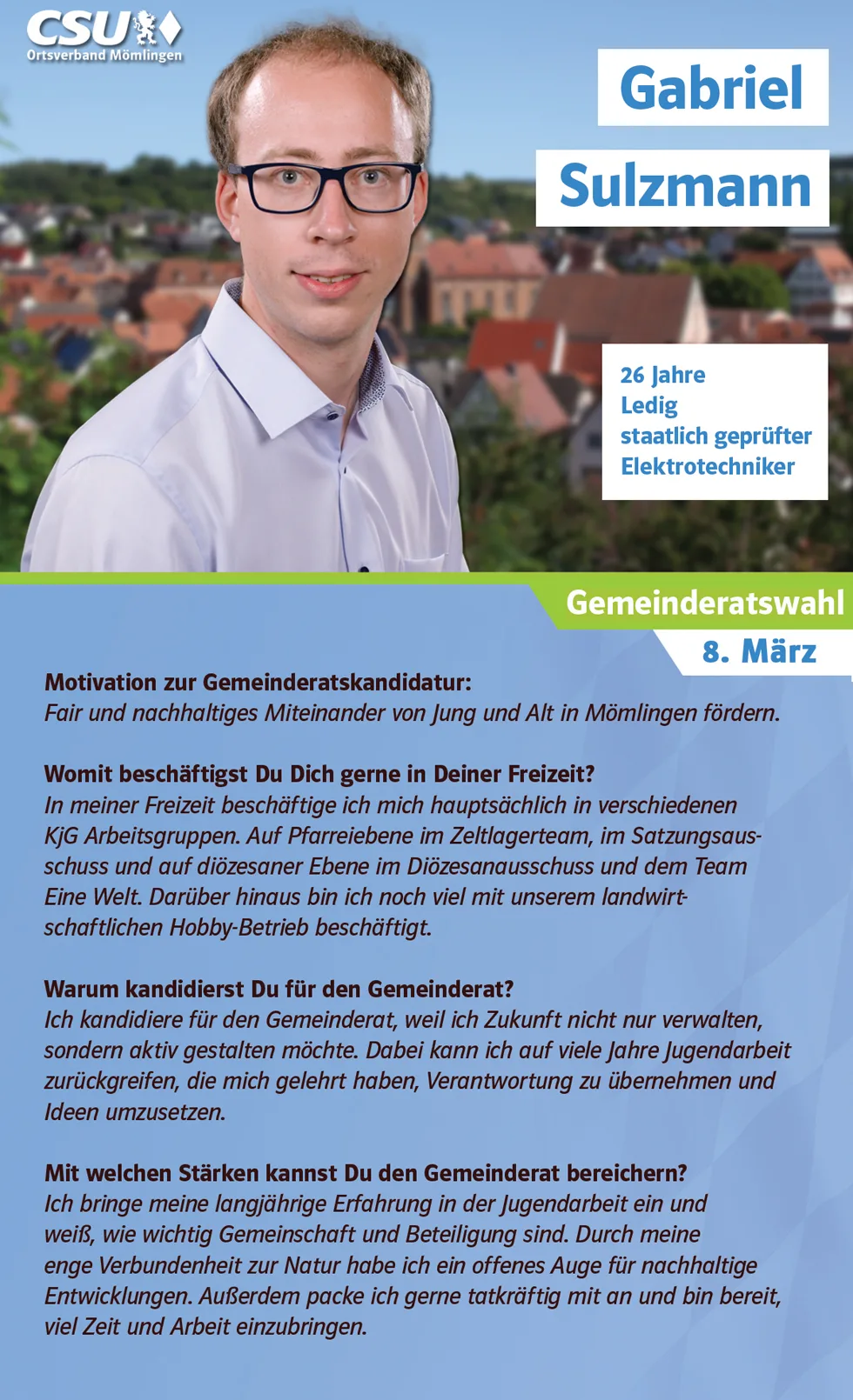 Mitglied im Gemeinderat MCV Mömlingen, Viktoria Mömlingen, KjG Mömlingen Beisitzer im CSU-Vorstand