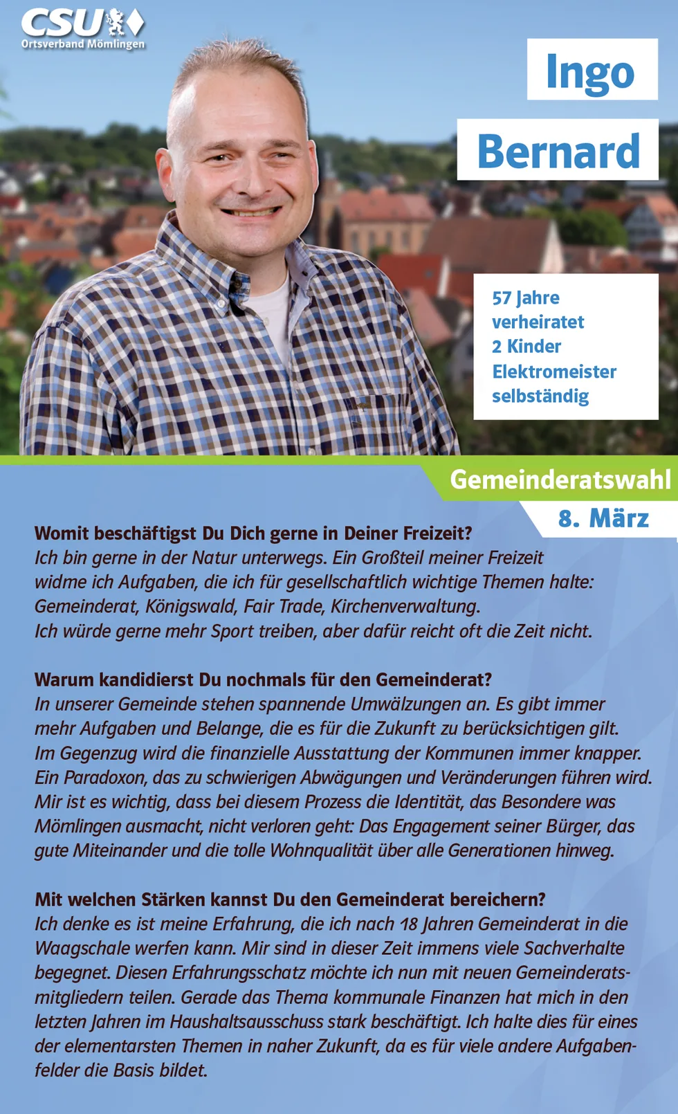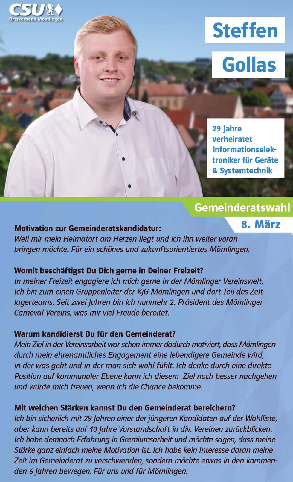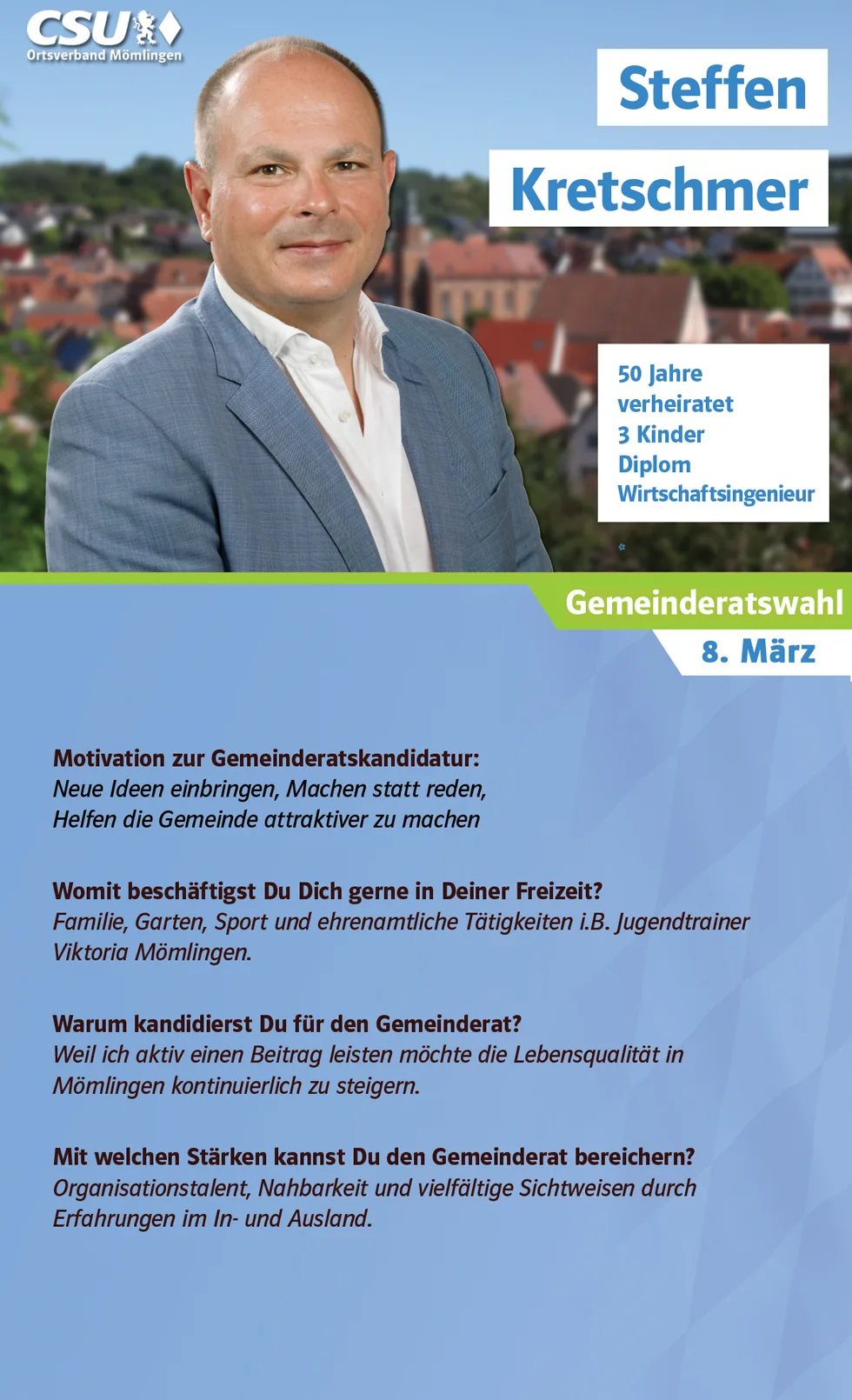 Mitglied im Gemeinderat MCV Mömlingen, Viktoria Mömlingen, KjG Mömlingen Beisitzer im CSU-Vorstand