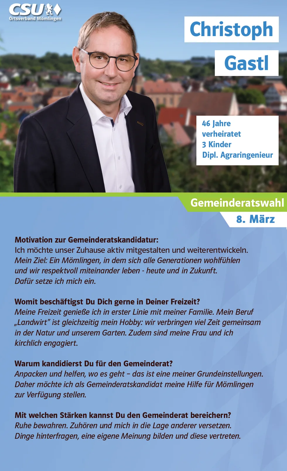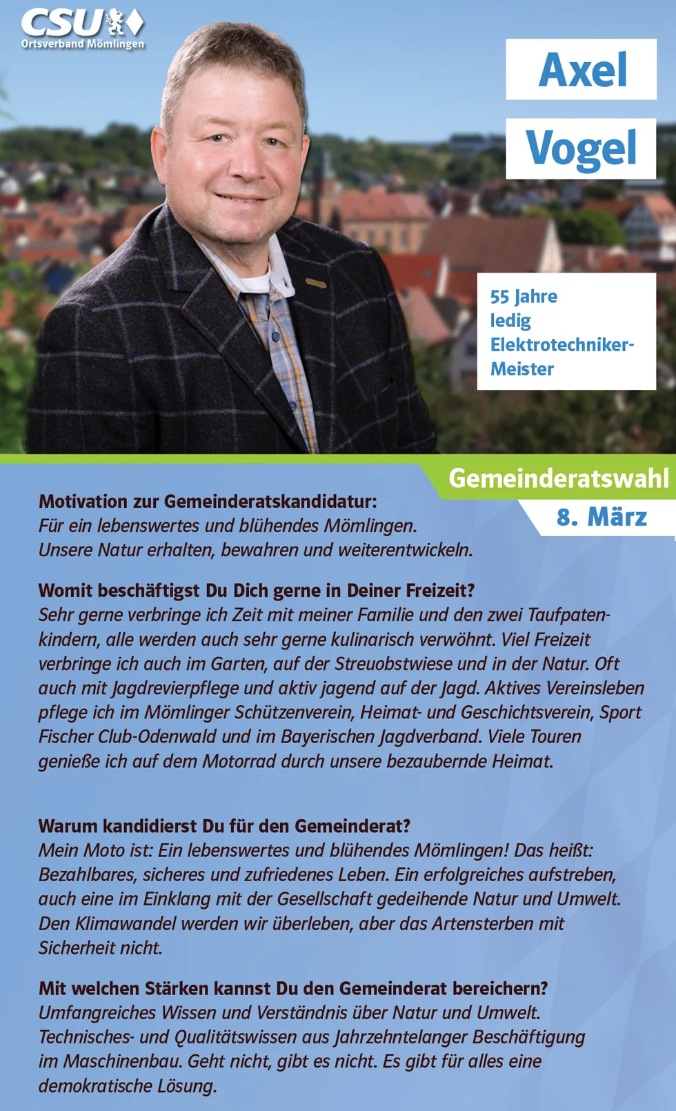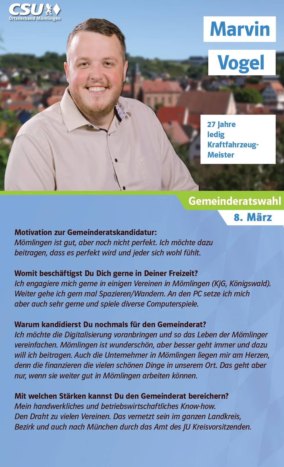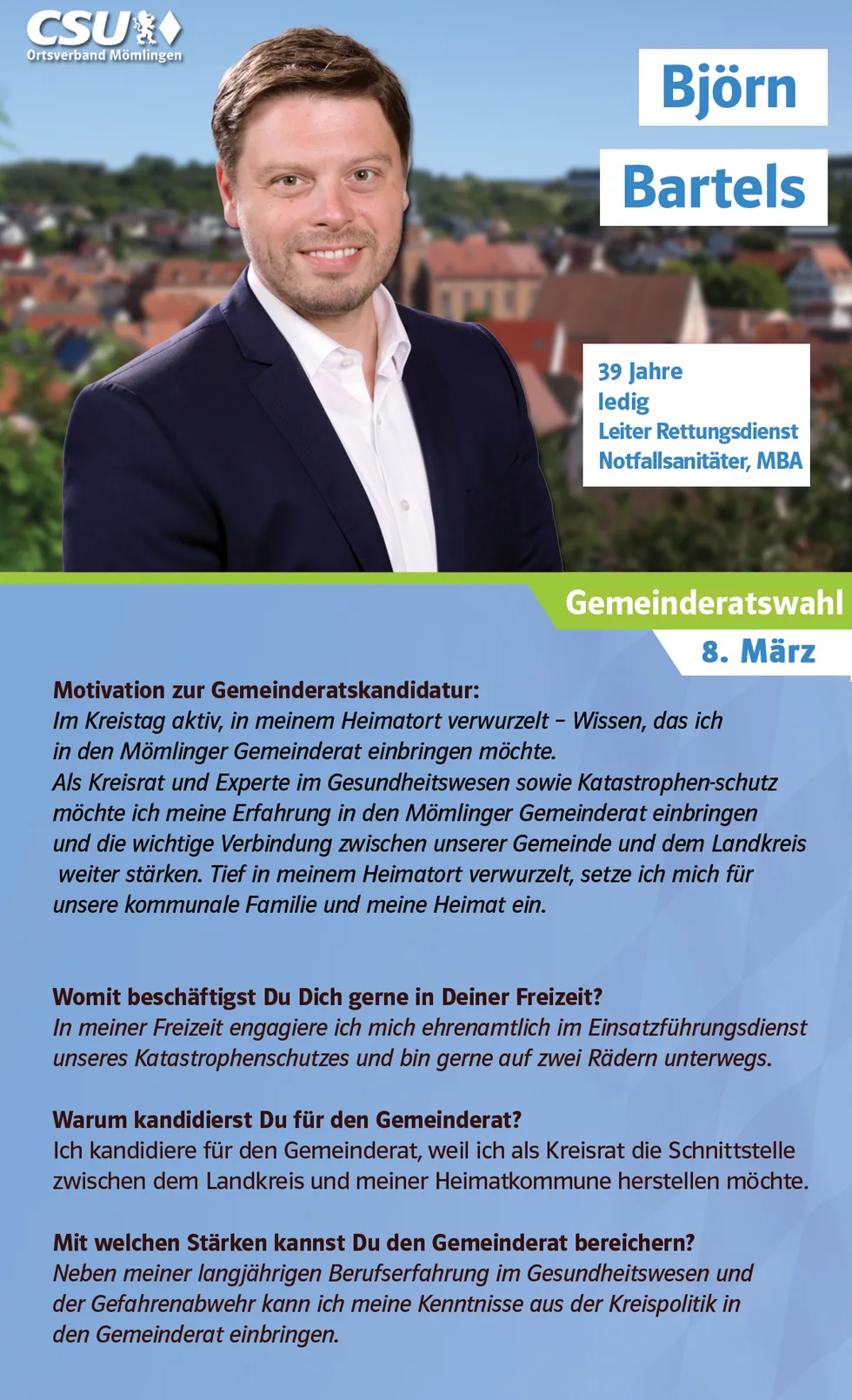 Mitglied im Gemeinderat MCV Mömlingen, Viktoria Mömlingen, KjG Mömlingen Beisitzer im CSU-Vorstand