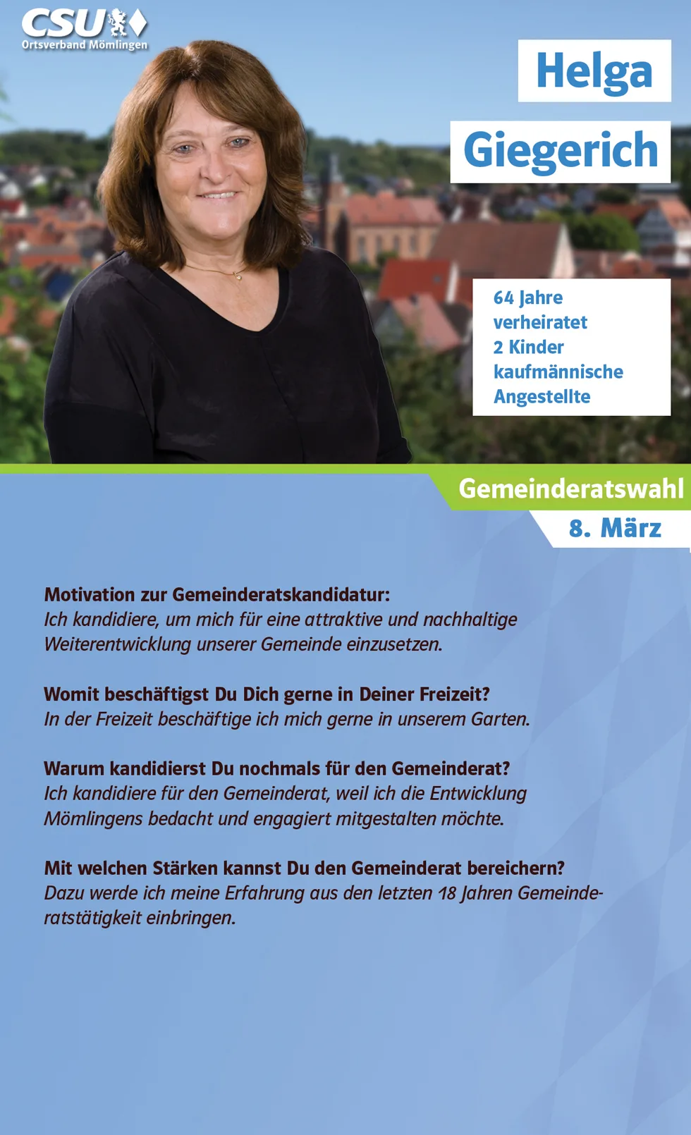 Mitglied im Gemeinderat Aufsichtsrätin Bürgerenergie Mömlingen eG Beisitzer im CSU-Vorstand